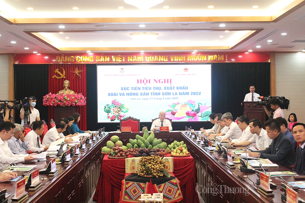 Để đẩy mạnh tiêu thụ nông sản, UBND tỉnh Sơn La phối hợp với Bộ Công Thương tổ chức “Hội nghị xúc tiến tiêu thụ, xuất khẩu Xoài và nông sản tỉnh Sơn La năm 2022” với 24 điểm cầu tại các tỉnh thành trong nước và 15 điểm cầu nước ngoài tại các nước Trung Quốc, Nhật Bản, Hàn Quốc, Australia, UAE.