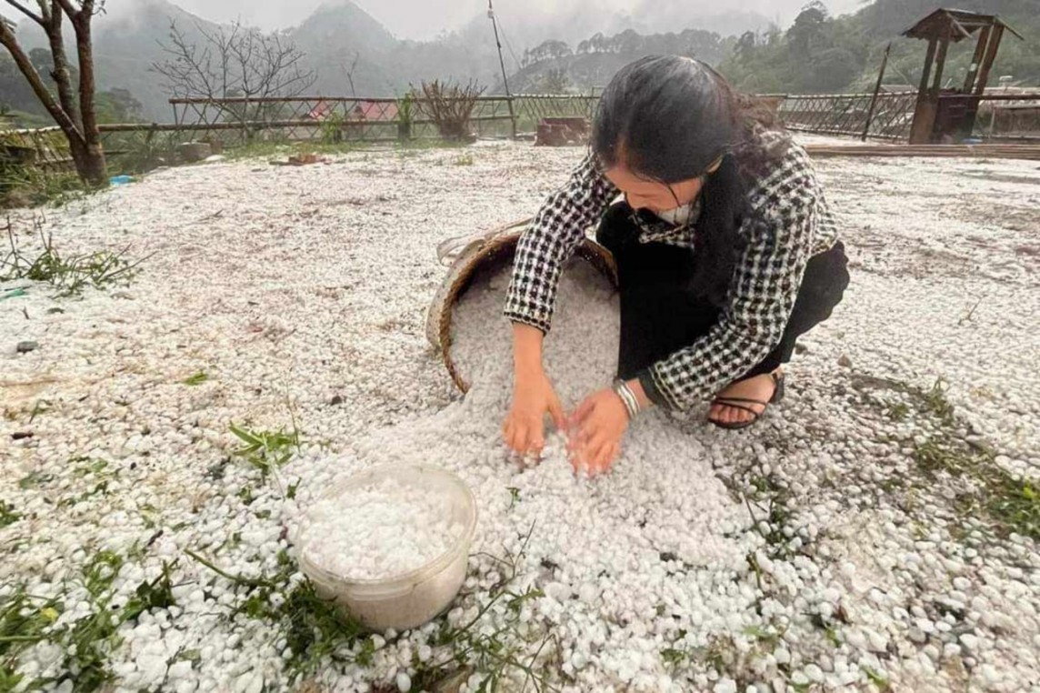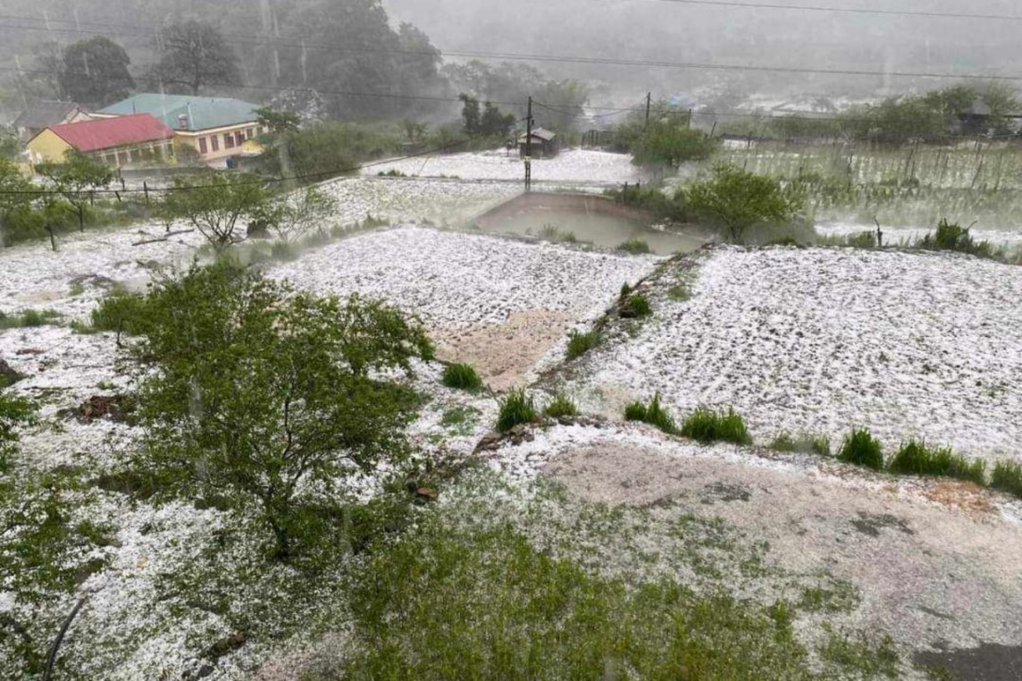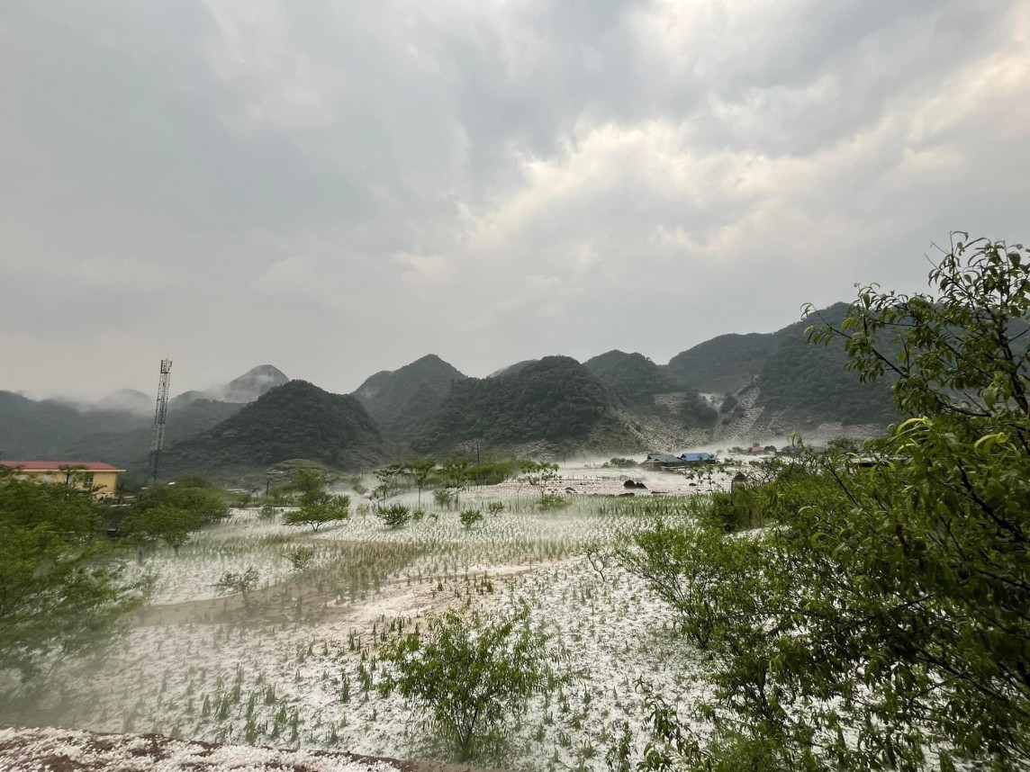 Cụ thể, khoảng 16h chiều 24/4, một trận mưa đá lớn trút xuống huyện vùng cao Vân Hồ, tỉnh Sơn La. Lượng đá rơi phủ trắng xoá nương rẫy, đường đi, gây thiệt hại nặng nề cho người dân.