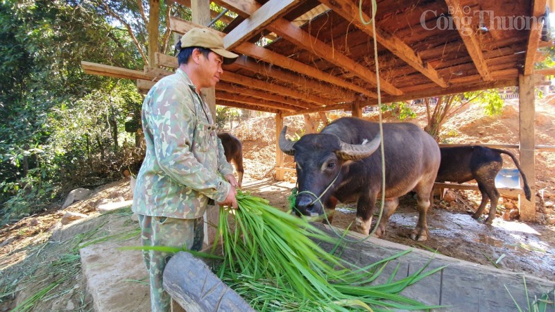 Theo anh Thinh, đàn trâu, bò nhà anh chủ yếu chăn thả trên bãi cỏ chung của bản. Bên cạnh đó, gia đình còn đầu tư xây dựng chuồng nuôi nhốt từ 5 - 7 con trâu, bò và trồng hơn 1.500m² cỏ voi để chủ động nguồn thức ăn. Đặc biệt, thường xuyên phối hợp với cán bộ thú y, khuyến nông của xã để tiêm vaccine phòng bệnh định kỳ nên đàn gia súc phát triển rất tốt, ít bị bệnh và xuất chuồng nhanh hơn.