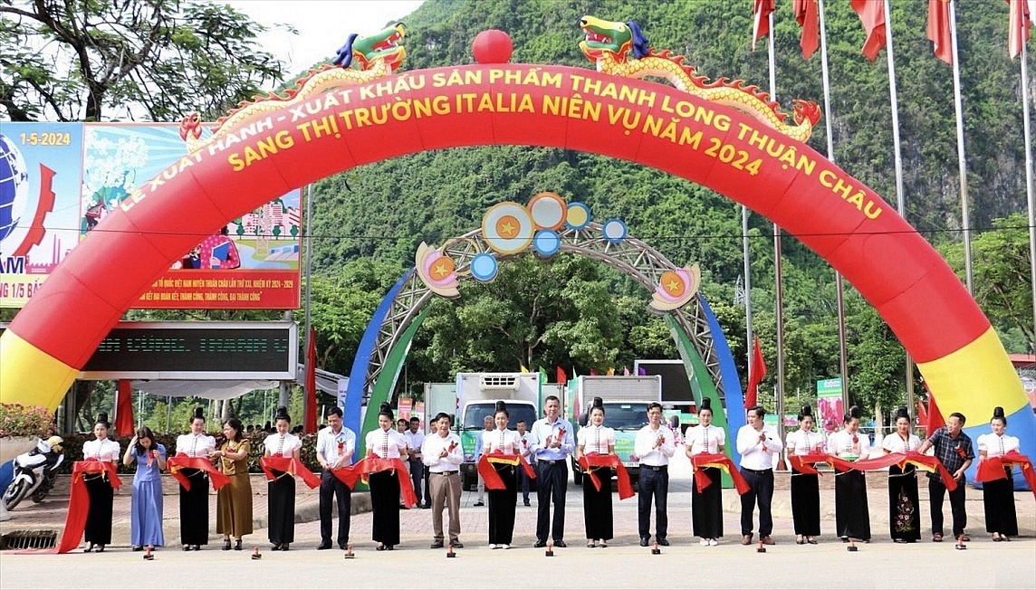 Ngày 21/6, 5 tấn thanh long ruột đỏ của Hợp tác xã nông nghiệp Quỳnh Thuận, xã Chiềng Pha và 27 hộ dân ở các xã Chiềng Pha, Phổng Lái - huyện Thuận Châu - Sơn La đã được xuất khẩu theo đường chính ngạch sang thị trường Italia.