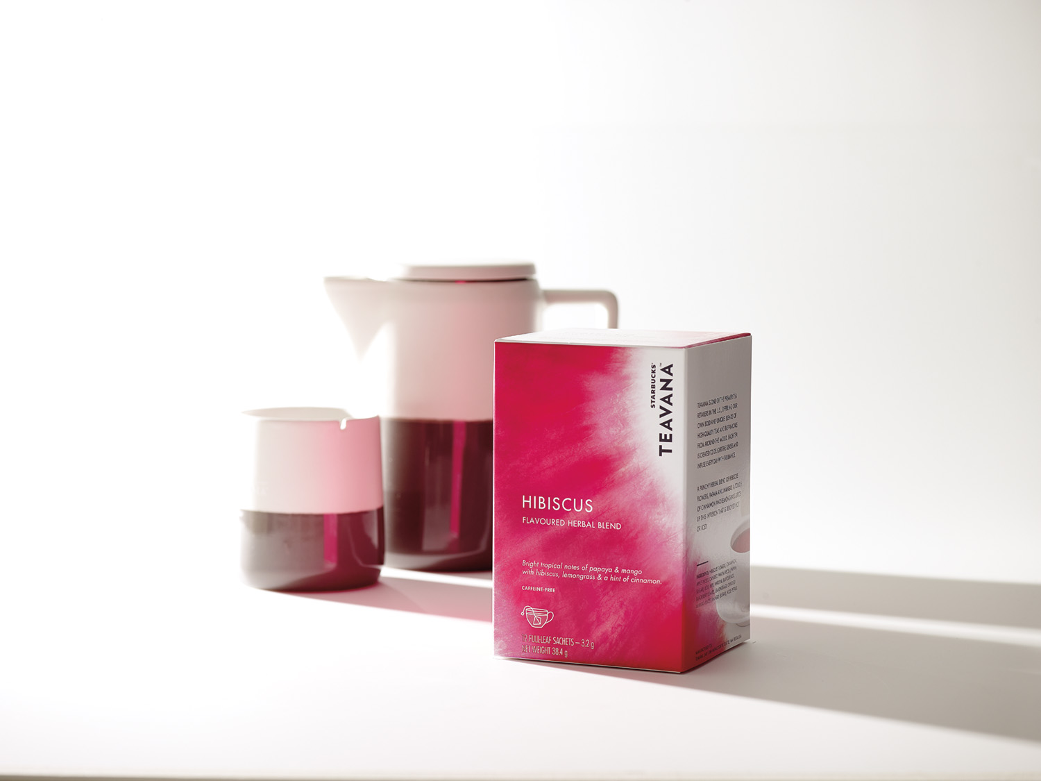Sản phẩm trà Starbucks® Teavana™ gồm các dòng: Matcha và Espresso Fusion (hỗn hợp trà và cà phê); Trà đen với bưởi hồng và mật ong; Trà hoa dâm bụt với thạch lựu.