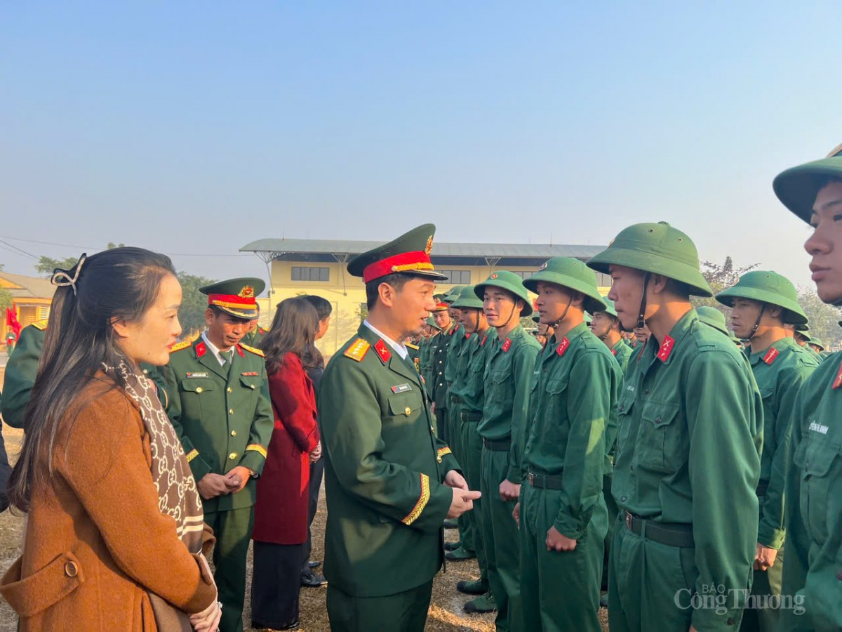 | Đại tá Lâm Dũng Tiến, Phó Chính ủy Sư đoàn động viên chiến sĩ hoàn thành nghĩa vụ quân sự năm 2025 tại Trung đoàn 148. (Ảnh: Tuấn Anh) |