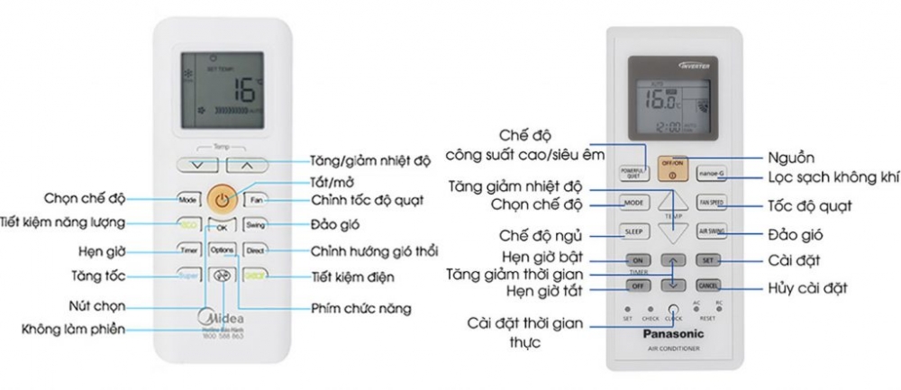 Hẹn giờ bật/tắt, chế độ tiết kiệm năng lượng hoặc quạt thông minh là hai chế độ giúp giảm lượng điện năng tiêu thụ của điều hòa đáng kể. Nếu lựa chọn một trong hai chế độ này, khi mức nhiệt trong phòng đã giảm xuống dưới nhiệt độ cài đặt thì máy nén sẽ ngừng chạy để tiết kiệm điện. Đồng thời, các quạt sẽ tự động bật/tắt 2-3 phút một lần để duy trì nhiệt độ. Trường hợp nhiệt độ trong phòng tăng lên cao hơn mức cài đặt, máy nén và quạt sẽ cùng hoạt động trở lại để hạ nhiệt độ phòng xuống. Khi đạt nhiệt độ yêu cầu, máy nén sẽ tự ngừng chạy.