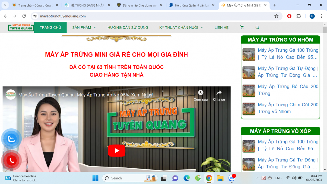 Tại thời điểm kiểm tra, đoàn kiểm tra phát hiện Hộ kinh doanh Nguyễn Văn Hào 1990 đang kinh doanh hàng hóa trên trang website có địa chỉ tên miền https://mayaptrungtuyenquang.com/, website có giỏ hàng, có chức năng bán hàng trực tuyến. Ông Nguyễn Văn Hào hiện tại vẫn đang sử dụng website để phục vụ hoạt động bán hàng nhưng không thông báo với cơ quan nhà nước có thẩm quyền trước khi bán hàng.