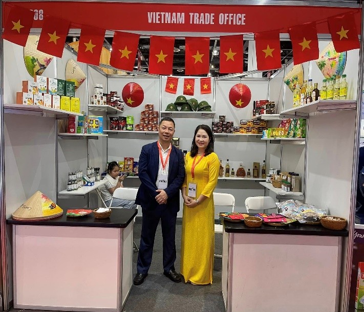 | Nhiều sản phẩm nông sản khác của các doanh nghiệp Việt Nam như cà phê, hồ tiêu, hạt điều, dầu ăn, bánh phở… được Thương vụ hỗ trợ trưng bày, giới thiệu |