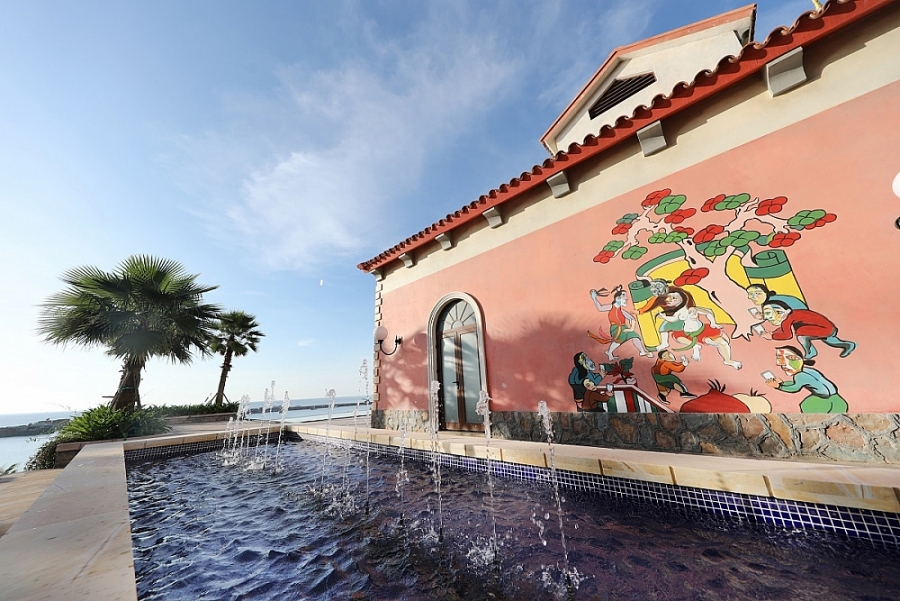 Đầu tiên phải kể đến “thị trấn Địa Trung Hải” – dự án đang được nhà phát triển BĐS Sun Property (thành viên Sun Group) kiến thiết ở Nam đảo Phú Quốc. Câu chuyện lịch sử, văn hóa của vùng đất lãng mạn Amalfi được tái hiện trong từng đường nét cảnh quan, kiến trúc, qua nghệ thuật sơn theming giả cổ 9 lớp công phu, để mỗi bước đi của du khách là một bước chân chạm vào văn hóa, nghệ thuật. Tại “thị trấn Địa Trung Hải” có những bức tường được đầu tư xây dựng như một tác phẩm nghệ thuật. Một vết tường lở, một viên gạch vỡ, một dấu loang của nước mưa in trên màu sơn… được các họa sĩ công phu tạo tác.