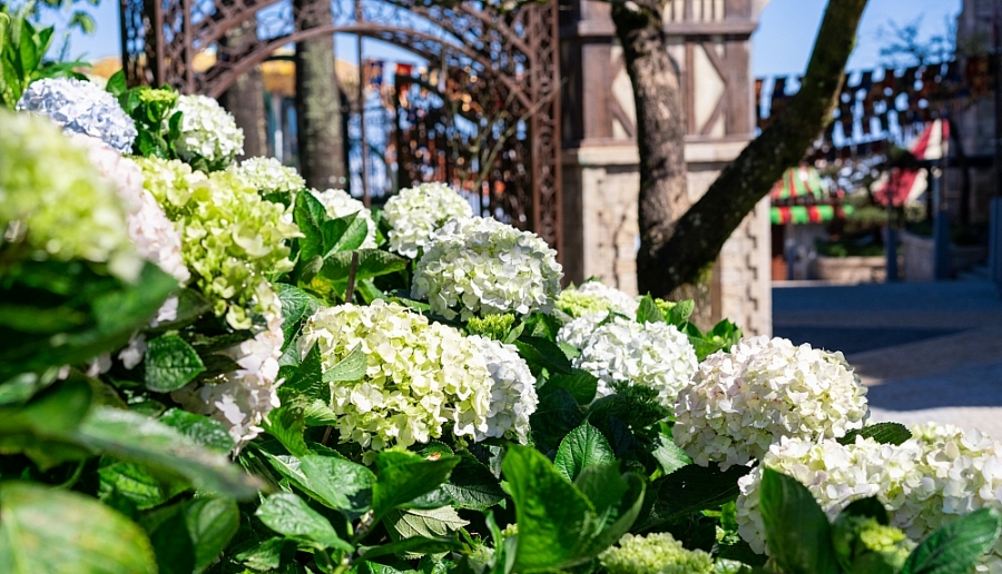 Những ngày này, Bà Nà Hills ngập tràn sắc hoa rực rỡ với hàng chục ngàn bông cẩm tú cầu xinh đẹp đủ sắc màu và các khu vườn hồng đang vào độ khoe sắc, khiến bất cứ góc nào của khu du lịch cũng dễ dàng trở thành điểm check in của du khách.