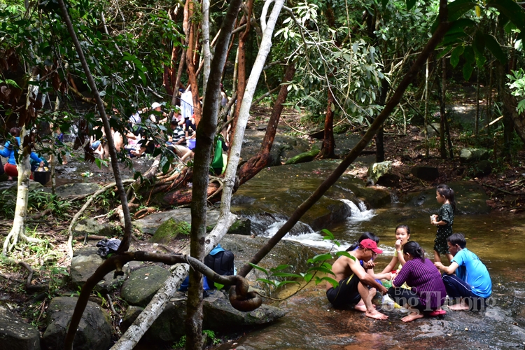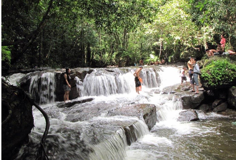 Dòng suối men theo các kẽ đá tuôn chảy mềm mại, lúc lững lờ, lúc róc rách như một bức tranh tươi đẹp mà mẹ thiên nhiên ban tặng cho đảo ngọc. Có đoạn suối chảy qua các ghềnh đá tạo nên những con thác mềm mại, trắng xóa trong màu xanh mượt mà của cỏ cây hoa lá. Ðến với điểm du lịch sinh thái này, du khách có thể tắm suối, đắm mình cùng làn nước trong vắt, mát lạnh hay ngả mình trên những tảng đá bằng phẳng, nghe tiếng suối chảy róc rách, tiếng chim kêu trong bầu không khí thoảng hương rừng bên suối.