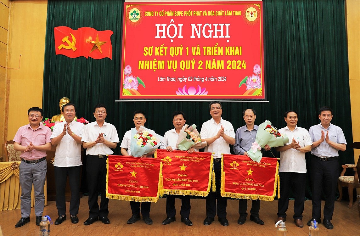 Nhằm ghi nhận những cố gắng, nỗ lực và đóng góp của các đơn vị vào thành tích chung của công ty trong quý I năm 2024, tại Hội nghị sơ kết quý, đồng chí Phạm Thanh Tùng, Bí thư Đảng ủy, Tổng giám đốc, Chủ tịch Hội đồng Thi đua khen thưởng công ty đã trao tặng Cờ đơn vị dẫn đầu thi đua cho các đơn vị: Xí nghiệp NPK 3, Phòng Quản lý chất lượng, Phòng Kinh doanh. Biểu dương các đơn vị: Xí nghiệp NPK 2, Supe 2, Phòng Kỹ thuật, Phòng Tài chính-Kế toán, Phòng Y tế.