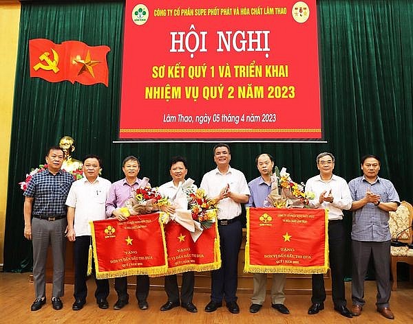 Nhằm ghi nhận những cố gắng, nỗ lực và đóng góp của các đơn vị vào thành tích chung của Công ty trong quý I/2023, tại hội nghị sơ kết quý, đồng chí Phạm Thanh Tùng, Bí thư Đảng ủy, Tổng Giám đốc, Chủ tịch Hội đồng Thi đua khen thưởng Công ty đã trao tặng Cờ đơn vị dẫn đầu thi đua cho các đơn vị: Xí nghiệp NPK 2, Phòng Quản lý chất lượng, Phòng Kinh doanh. Biểu dương các đơn vị: Xí nghiệp Supe số 1, Supe số 2, Phòng Kỹ thuật, Phòng Tài chính-Kế toán, Phòng Y tế.