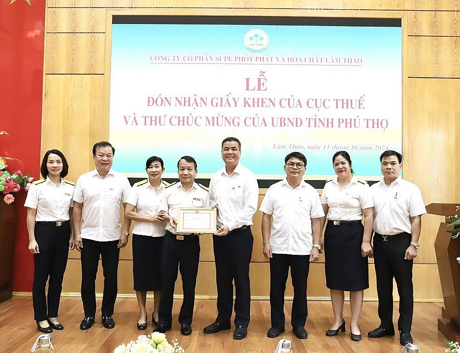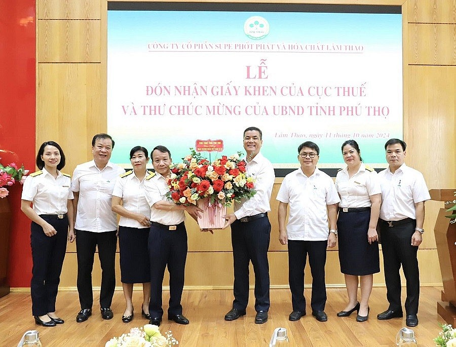 Trước đó, năm 2023, Supe Lâm Thao cũng vinh dự được Tổng Cục Thuế vinh danh "Doanh nghiệp nộp thuế tiêu biểu". Trong nhiều năm qua, mặc dù phải đối mặt với muôn vàn khó khăn thách thức, nhất là những tác động của đại dịch Covid-19, những biến động khó lường của thị trường phân bón, song với định hướng quản lý và chiến lược linh hoạt của Ban điều hành Công ty nên đã chủ động nghiên cứu, đưa ra nhiều giải pháp sáng tạo, đổi mới hoạt động sản xuất kinh doanh nhằm duy trì hoạt động ổn định, hiệu quả, đạt được kết quả năm sau luôn cao hơn năm trước, đời sống của người lao động được nâng cao về cả vật chất cũng như tinh thần. Bên cạnh đó, Công ty luôn nỗ lực hết mình thực hiện trách nhiệm với cộng đồng xã hội qua các đóng góp từ thiện cũng như hoàn thành xuất sắc nghĩa vụ nộp thuế, đóng góp một phần quan trọng vào nguồn thu ngân sách của cơ quan Thuế.