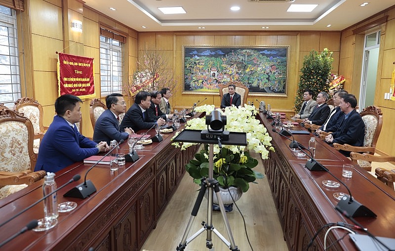 | Ban lãnh đạo Công ty đến thăm hỏi, chúc Tết khách hàng và cán bộ, nhân viên làm việc tại Trạm bán hàng |