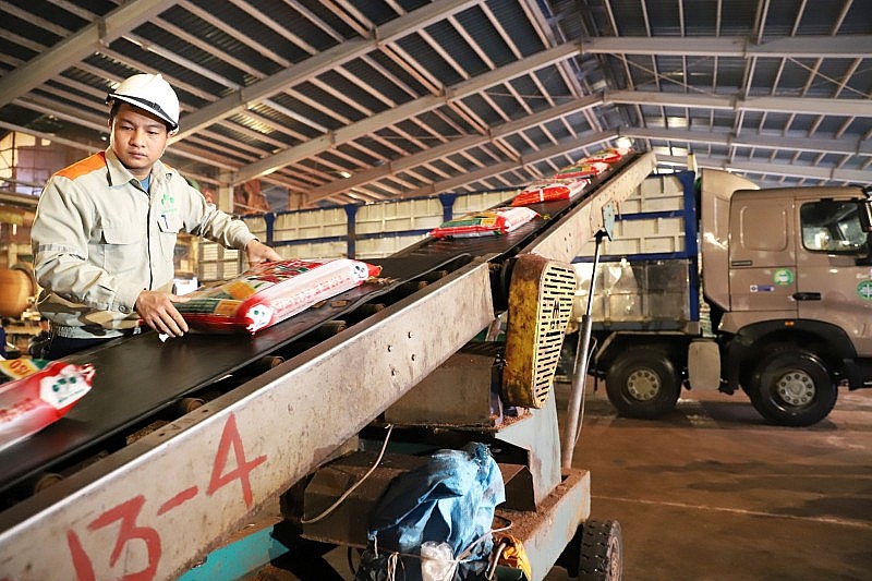 | Những bao phân bón Supe Lâm Thao đầu tiên trong năm mới được xuất bán đến tay khách hàng |