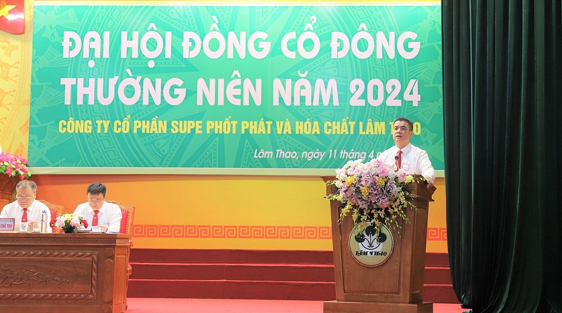 Trong đó, Báo cáo của HĐQT và Báo cáo của Ban Tổng giám đốc đều nhấn mạnh: Năm 2023, hoạt động sản xuất kinh doanh của công ty gặp rất nhiều khó khăn do tác động của tình hình kinh tế xã hội và những biến động của thị trường phân bón… Tuy nhiên, công ty đã chủ động, linh hoạt đề ra các biện pháp phù hợp với tình hình thực tế, kịp thời khắc phục khó khăn, đẩy mạnh phát triển sản xuất kinh doanh và hoàn thành xuất sắc mục tiêu kế hoạch năm 2023. Do đó, công ty đã thực hiện vượt mức 3 chương trình mục tiêu đề ra: Tăng nộp ngân sách Nhà nước, lợi nhuận cho doanh nghiệp và đời sống người lao động được nâng cao, cụ thể: Doanh thu bán hàng và cung cấp dịch vụ đạt 3.568 tỷ đồng, bằng 110% so với kế hoạch năm, tăng 9% so với cùng kỳ; Lợi nhuận trước thuế đạt 186 tỷ đồng, bằng 155% so với kế hoạch năm, tăng 56 % so với cùng kỳ; đóng góp vào ngân sách Nhà nước 36 tỷ đồng; thu nhập bình quân của người lao động đạt trên 14 triệu đồng/người/tháng. Với kết quả kinh doanh vượt mức các chỉ tiêu kế hoạch, công ty đã trình Đại hội đồng cổ đông về kế hoạch trả cổ tức 10%.
