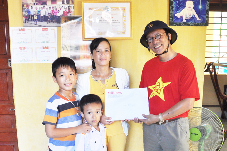 | Phóng viên Báo Công Thương tặng quà cho người dân trên đảo Sinh Tồn |