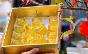 Bánh trang trí hình thỏi vàng, hũ vàng được nhiều người quan tâm, tìm mua trước ngày vía Thần Tài. Các mặt hàng năm nay có mức giá, mẫu mã đa dạng.