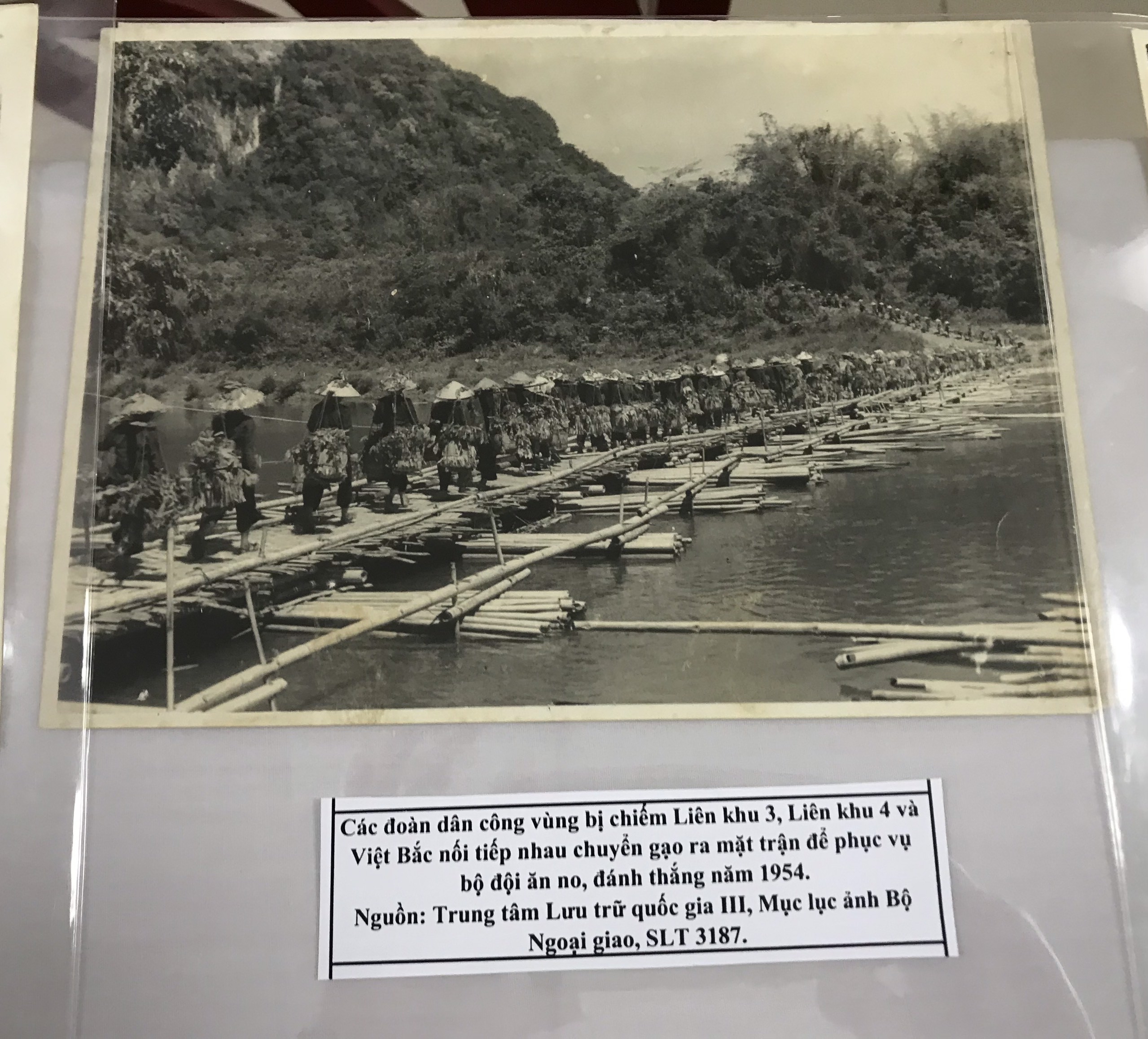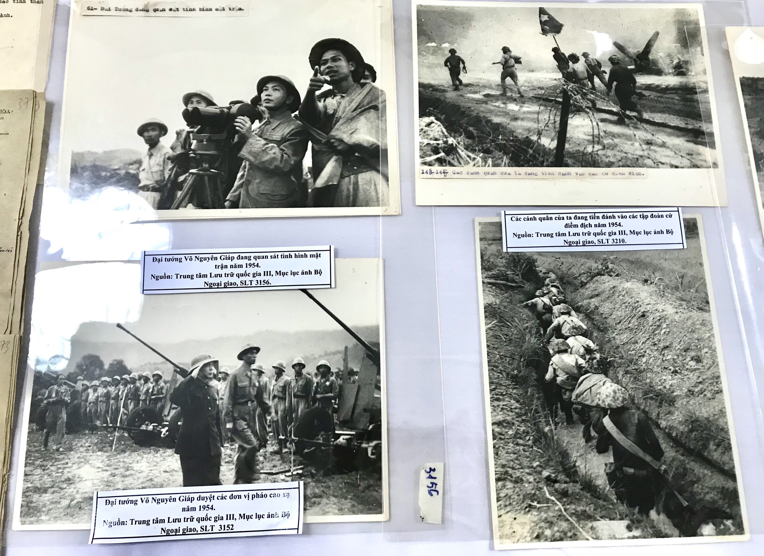Qua các tài liệu lưu trữ giá trị, công chúng như được sống lại những thời khắc có một không hai của lịch sử dân tộc, đó là hình ảnh Chủ tịch Hồ Chí Minh cùng các đồng chí Trường Chinh, Phạm Văn Đồng, Võ Nguyên Giáp họp quyết định mở Chiến dịch Điện Biên Phủ, tháng 12/1953; những đoàn xe thồ chở lương thực nối đuôi nhau ra mặt trận; hình ảnh chiến đấu dũng cảm của chiến sĩ; hình ảnh bộ đội rước ảnh Chủ tịch Hồ Chí Minh đi tuần hành trên những chiếc xe tăng chiến lợi phẩm, giữa những tiếng hoan hô vang dậy của quân dân Điện Biên Phủ năm 1954; hình ảnh Đại tướng Võ Nguyên Giáp làm lễ trao Cờ quyết chiến, quyết thắng cho những đơn vị có nhiều thành tích nhất trong Chiến dịch Điện Biên Phủ…