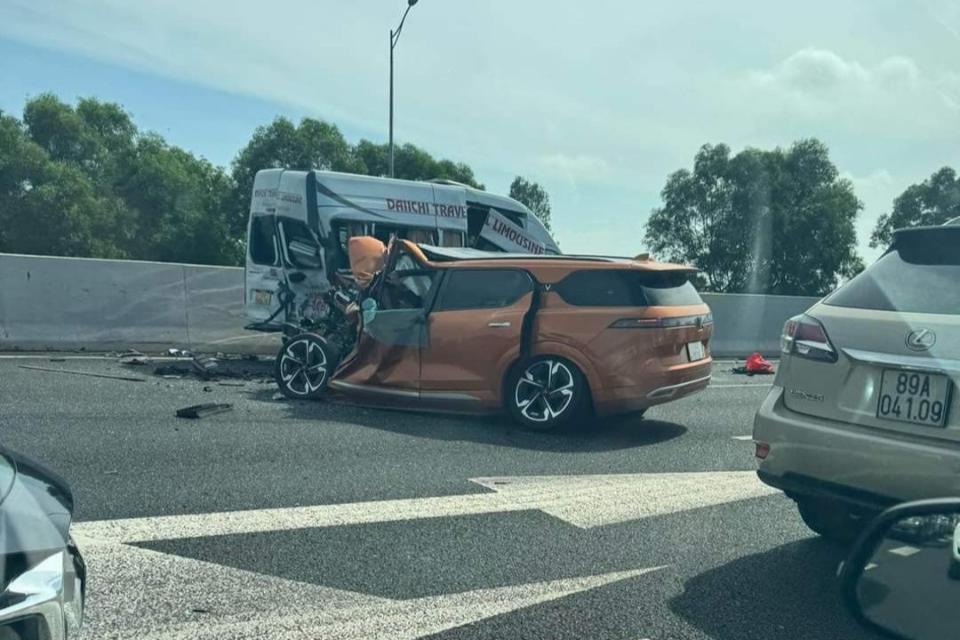 Tại hiện trường, chiếc xe ô tô 4 chỗ chắn ngang cao tốc, còn chiếc Limousine nằm giải phân cách giữa đường phía dưới gầm có nhiều người bất tỉnh.