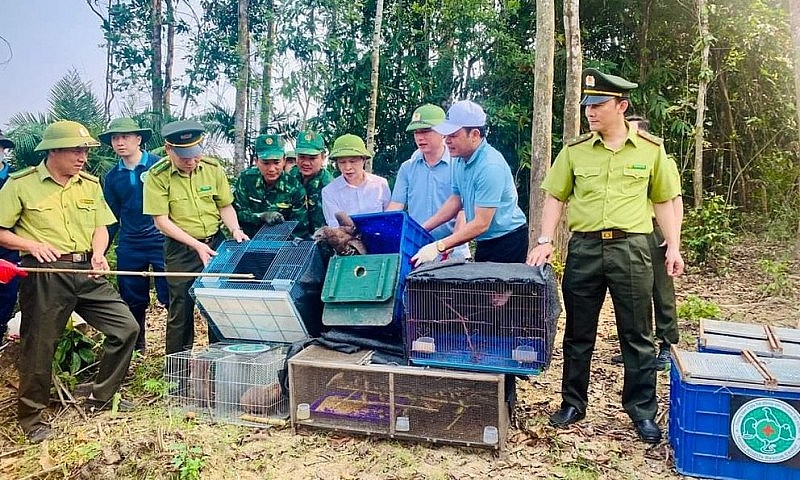 | Vườn quốc gia Vũ Quang (tỉnh Hà Tĩnh) tiếp nhận 100 cá thể động vật hoang dã do Trung tâm Cứu hộ động vật hoang dã Hà Nội bàn giao. |