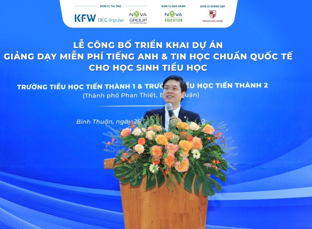 Ngày 26/9/2022, Tập đoàn NovaGroup phối hợp với DEG Impulse – công ty thành viên của Quỹ đầu tư thuộc Ngân hàng tái thiết Đức (KfW) công bố và giới thiệu dự án “Giảng dạy miễn phí Tiếng Anh và Tin học chuẩn quốc tế cho học sinh các trường Tiểu học” tại tỉnh Bình Thuận và tỉnh Đồng Tháp.