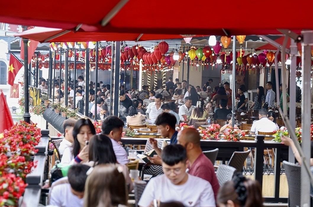 | Các khu nhà hàng tại thị trấn Tam Đảo chật kín du khách. Ảnh: Khánh Linh |