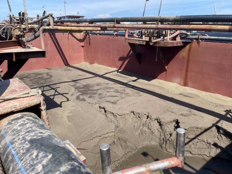 | Khoảng 200 m3 cát không rõ nguồn gốc về tới cảng Hải đội 301 để tiếp tục điều tra |