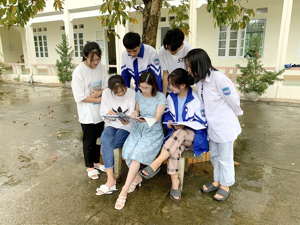| Cô giáo Nguyễn Thị Thanh Xuân trao đổi cùng học trò |