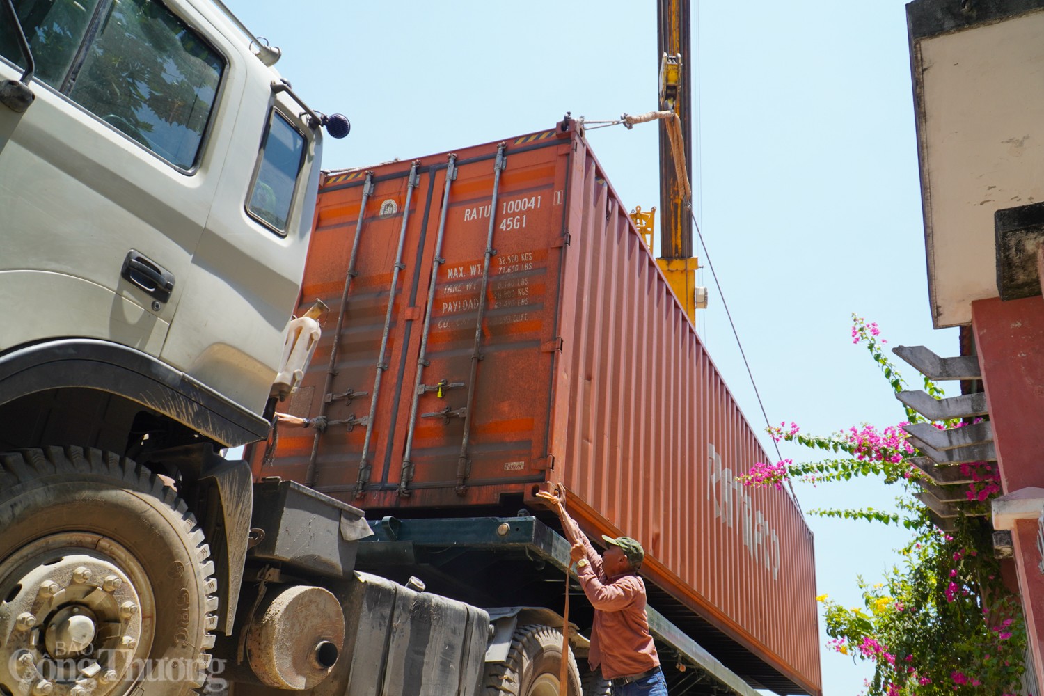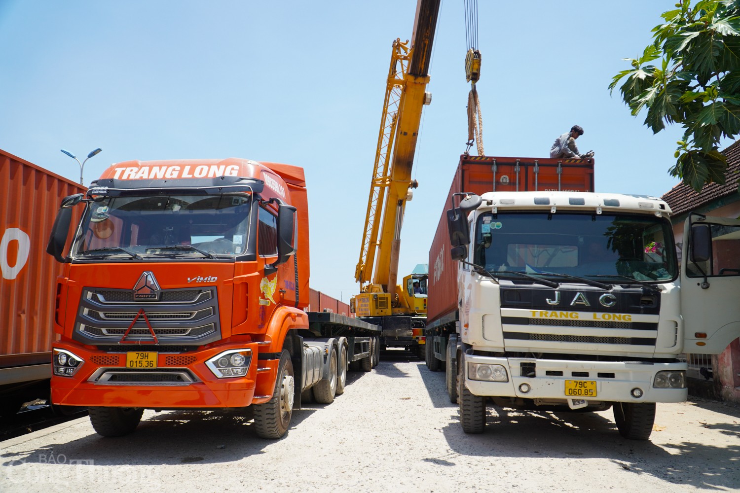 Phụ trách chuyển container xuống tại ga Hoà Huỳnh, tài xế Trần Phước Tuệ, nhân viên đơn vị vận chuyển Thăng Long cho hay đối với hàng hoá tập kết tại ga Hoà Huỳnh sẽ dùng cẩu 100 tấn dỡ xuống xe tải, đưa ra ga Diêu Trì (Bình Định).