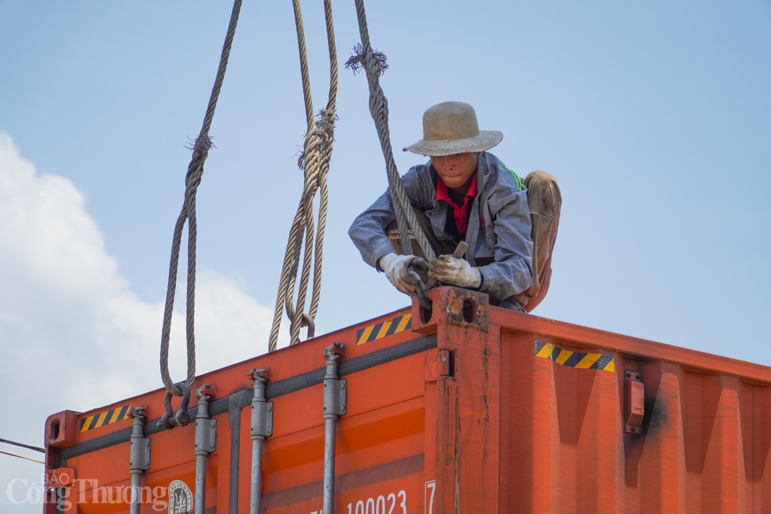 | Công tác bốc dỡ container được ngành đường sắt thực hiện khẩn trương. |