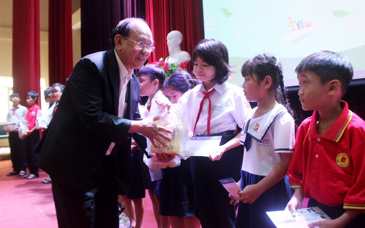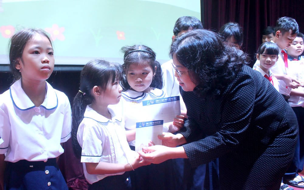 | Công ty Tân Hiệp Phát phối hợp với Tỉnh đoàn Bình Dương trao tặng 200 suất học bổng cho các em học sinh có hoàn cảnh khó khăn trên địa bàn. Ảnh: Trần Khánh |