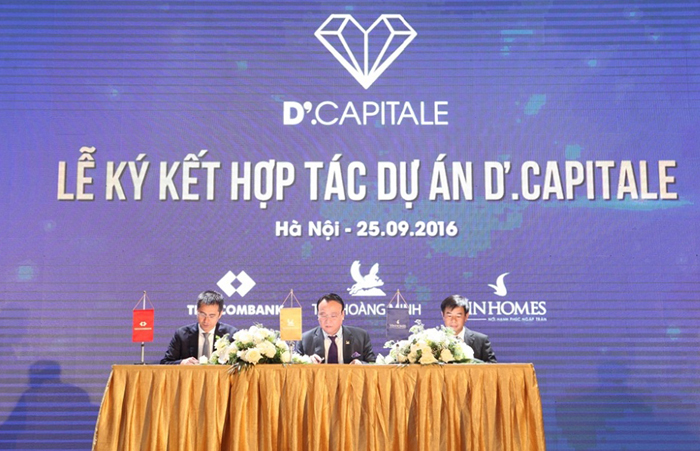 Tiếp theo thỏa thuận hợp tác chiến lược tháng 5/2016 giữa Vingroup và Tân Hoàng Minh Group, sự tham gia của Techcombank đã xác lập thế chân kiềng vững chãi cho dự án D’.Capitale. Theo đó, dự án D’.Capitale do Tân Hoàng Minh Group là chủ đầu tư; Công ty Cổ phần Kinh doanh và quản lý bất động sản Vinhomes thuộc Vingroup phân phối, vận hành; Techcombank bảo trợ vốn và bảo lãnh tiến độ bàn giao dự án.
