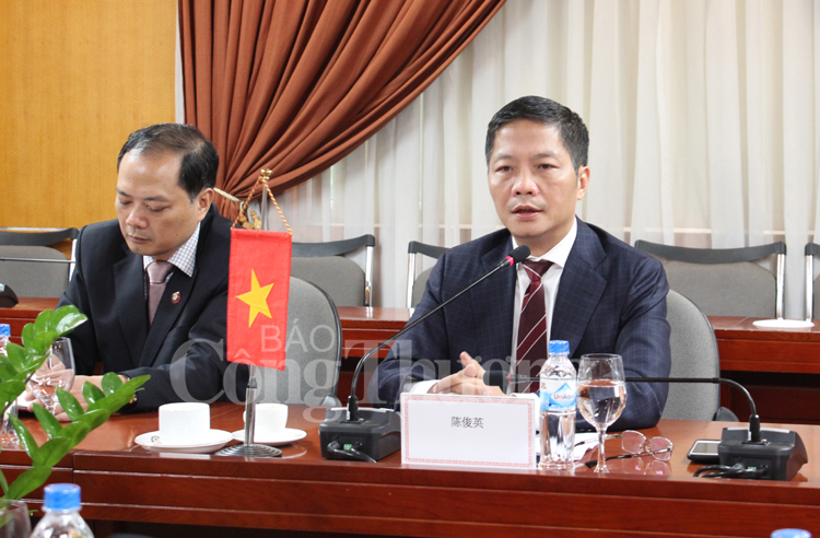 Thông tin tại buổi làm việc cũng cho thấy, hợp tác kinh tế giữa Việt Nam và Trung Quốc đang ngày càng phát triển. Trung Quốc liên tục là đối tác thương mại lớn và quan trọng của Việt Nam, hiện đã trở thành đối tác thương mại lớn nhất của Việt Nam. Ở chiều ngược lại, Việt Nam cũng dần có được vị trí trong quan hệ thương mại với Trung Quốc, đánh dấu bằng việc năm 2016, Việt Nam đã vượt qua Malaysia để trở thành đối tác thương mại lớn nhất của Trung Quốc trong khu vực ASEAN.