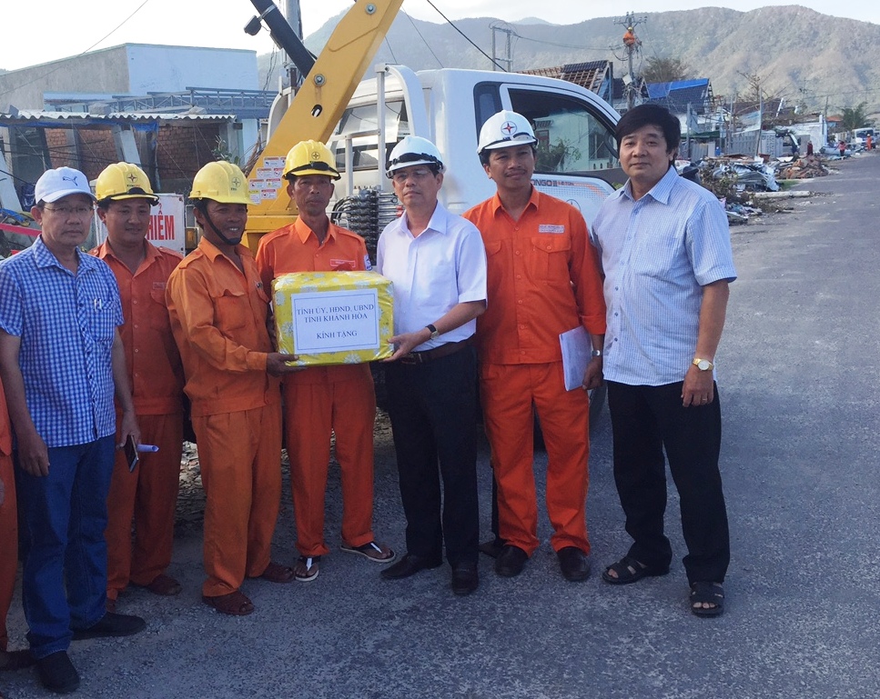 Cùng chung khí thế, Công ty Điên lực Quảng Trị cử 32 cán bộ, công nhân cùng các trang thiết bị và 7 xe chuyên dụng tham gia hỗ trợ khắc phục hậu quả lưới điện do bão số 12 gây ra tại tỉnh Khánh Hòa.