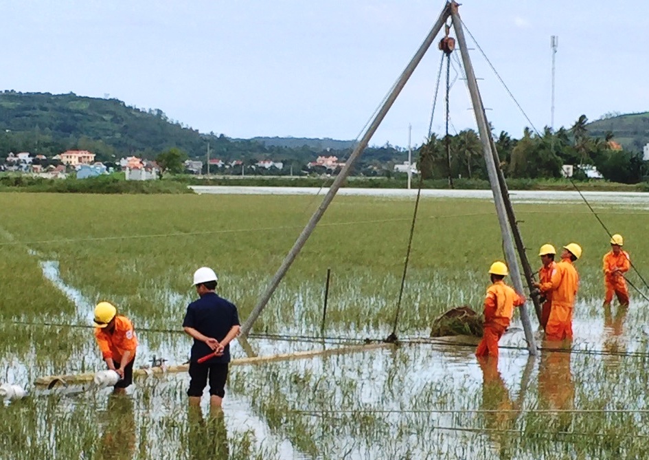 | CBCNV PC Thừa Thiên Huế đang khắc phục sự cố do bão 12 tại tỉnh Phú Yên |