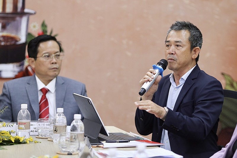 | Ông Thái Như Hiệp - Phó Chủ tịch Hiệp hội Cà phê Ca cao Việt Nam, Giám đốc Công ty TNHH Vĩnh Hiệp trao đổi tại hội thảo. |
