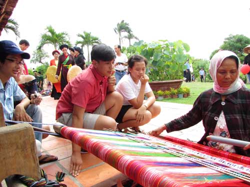 Du khách chiêm ngưỡng dệt vải của người Chăm