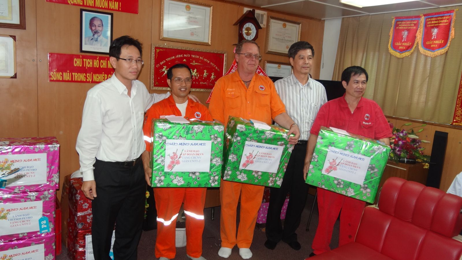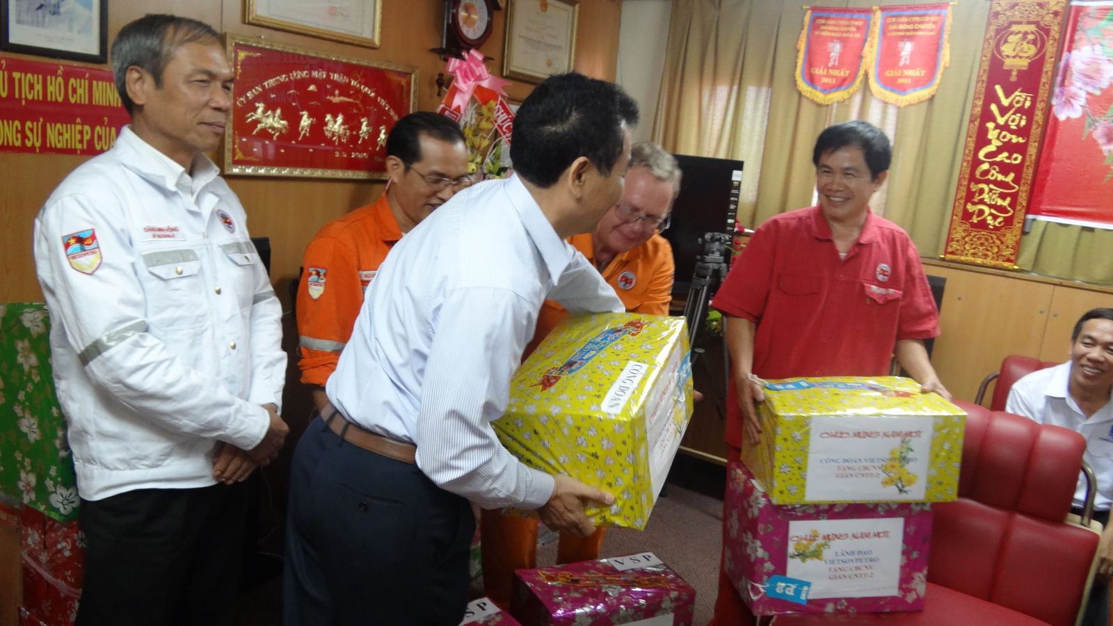 CôngThương - Đến hẹn lại lên, mỗi dịp tết đến, xuân về; lãnh đạo PVN cùng đại diện các đơn vị trong ngành Dầu khí lại có những chuyến bay ra giàn khoan để động viên, tặng quà cho những người lao động đón tết xa nhà, ngày đêm bám giàn, khai thác những tấn dầu, góp phần quan trọng phát triển ngành Dầu khí nói riêng và cho nến kinh tế đất nước nói chung. Tuy chỉ là những món quà nhỏ nhưng đã góp phần động viên tinh thần của những cán bộ xa nhà trong dịp tết.