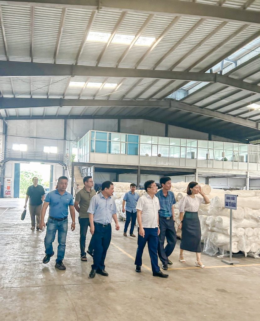 Lãnh đạo Tập đoàn dệt may Việt Nam đã kiểm tra công tác chuẩn bị đánh giá hệ thống phục vụ sản xuất chính thức trong khuôn khổ dự án vải chống cháy. Ảnh: Vinatex |