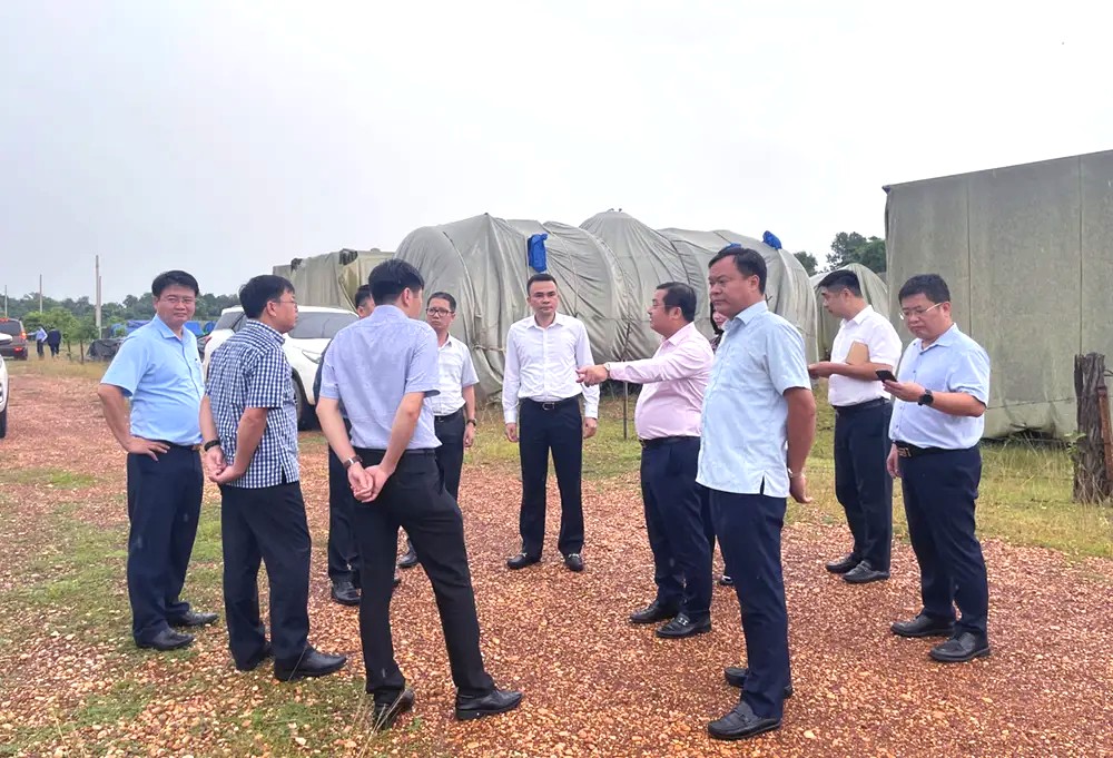 Sau các buổi làm việc, đoàn công tác đã đến kiểm tra hiện trường Dự án (bao gồm khu vực mặt bằng nhà máy, khu vực giếng khoan khai thác, văn phòng quản lý Dự án) và thăm, tặng quà, động viên các cán bộ của Công ty Vilachemsalt đang làm nhiệm vụ.