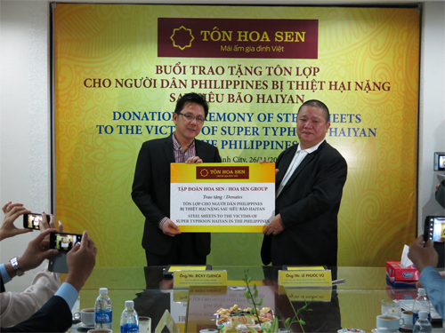 Tập đoàn Hoa Sen tài trợ tôn lợp nhà cho Philippines