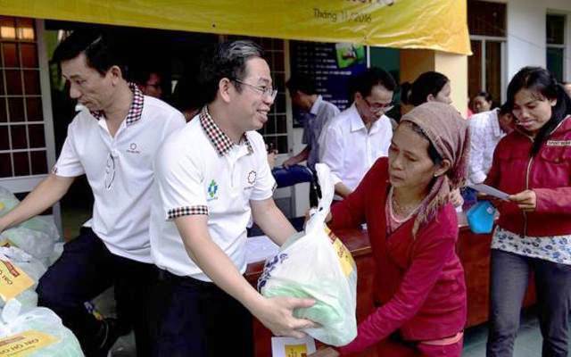 Ông Hồ Thanh Hiếu - Phó Tổng giám đốc Tập đoàn Hoa Sen trao quà cho bà con xã Xuân Lãnh, huyện Đồng Xuân, tỉnh Phú Yên |