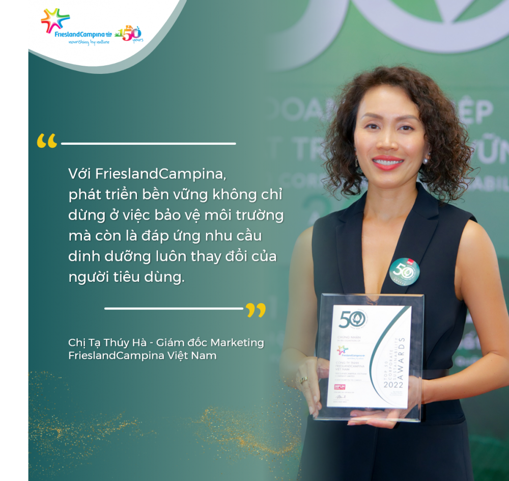 Vừa qua, Tập đoàn FrieslandCampina Việt Nam (đơn vị sở hữu thương hiệu sữa Cô Gái Hà Lan, Friso, Yomost...) đã được Tạp chí Nhịp cầu Đầu tư bình chọn trong Top 50 Doanh nghiệp phát triển bền vững tiêu biểu 2022 - Khối doanh nghiệp đầu tư trực tiếp nước ngoài.