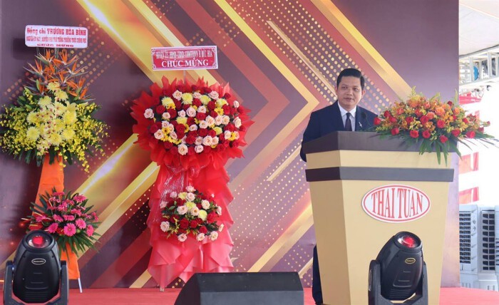 | Ông Trần Hoài Nam, Chủ tịch HĐQT, kiêm Tổng Giám đốc Tập đoàn Thái Tuấn phát biểu tại buổi lễ khởi công. |