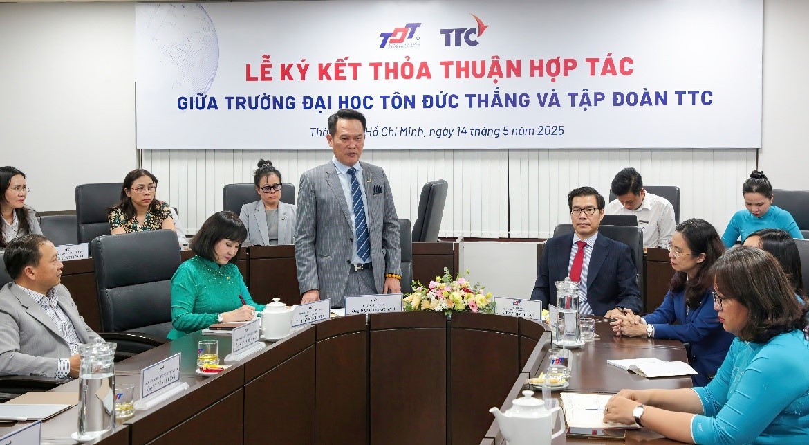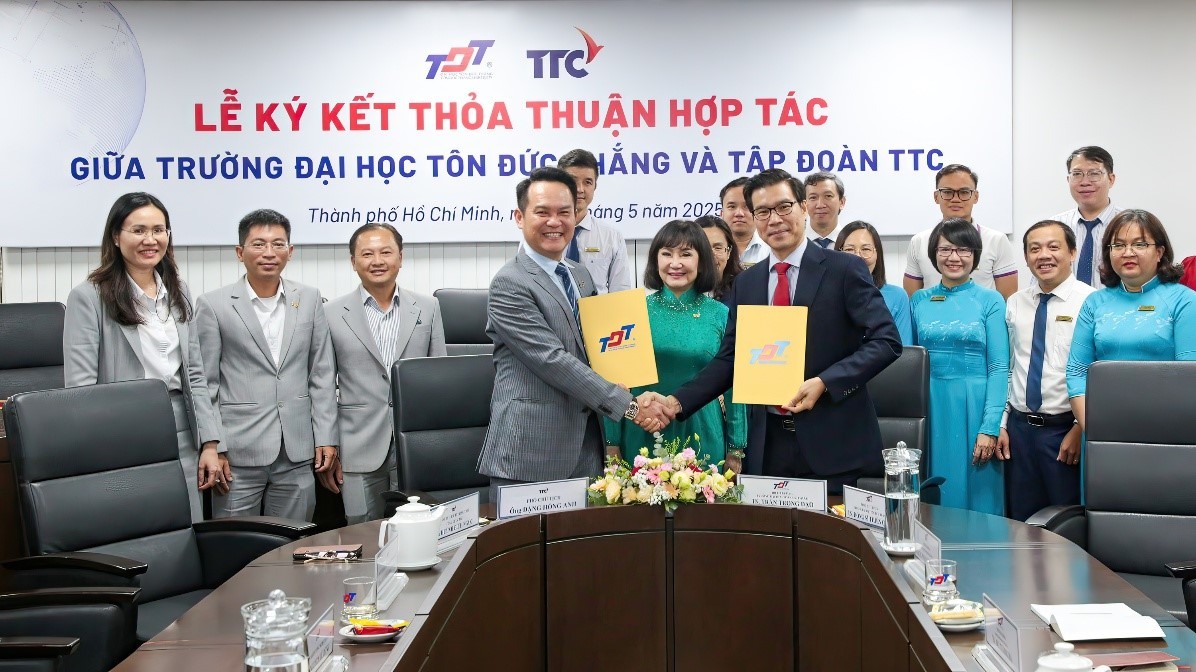 Nghi thức ký kết thỏa thuận hợp tác giữa Tập đoàn TTC và Trường Đại học Tôn Đức Thắng. |