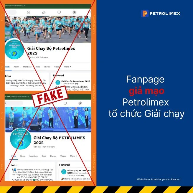 Cụ thể, theo Tập đoàn Xăng dầu Việt Nam – Petrolimex, fanpage giả mạo mang tên: Giải chạy Online - Vì Trường Sa xanh; Chạy bộ trực tuyến phủ xanh Trường Sa; Giải chạy bộ Petrolimex 2025…