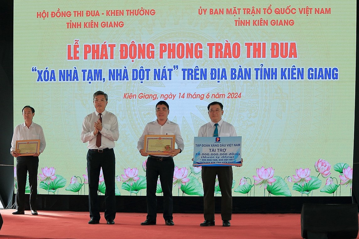 Tập đoàn Xăng dầu Việt Nam ủng hộ 10 tỷ đồng, để cùng cộng đồng doanh nghiệp, các cá nhân hảo tâm và tỉnh Kiên Giang xóa hơn 1.600 nhà tạm, góp phần đem đến cuộc sống an cư lạc nghiệp cho người dân có hoàn cảnh khó khăn.