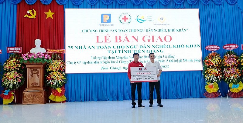 Tại Tiền Giang, Tập đoàn Xăng dầu Việt Nam đã hưởng ứng Chương trình “An toàn cho ngư dân nghèo, khó khăn” giai đoạn 2022 - 2027 do Hội Chữ thập đỏ Việt Nam phát động, với mục tiêu chung cải thiện điều kiện lao động, an toàn và sinh kế cho ngư dân nghèo, có hoàn cảnh khó khăn, góp phần thực hiện Chiến lược phát triển bền vững kinh tế biển Việt Nam, trong thời gian qua Petrolimex đã luôn tích cực tham gia sự vận động, nhằm chung tay cùng Hội Chữ thập đỏ Việt Nam và nhà hảo tâm trên cả nước thực hiện tốt mục tiêu chương trình đề ra.