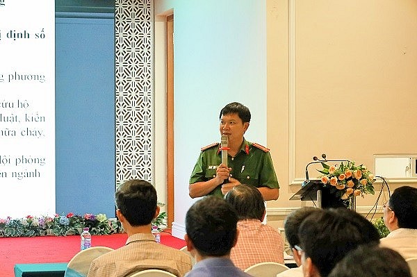 | Trung tá, Trưởng phòng Công tác Phòng cháy - Cục Cảnh sát phòng cháy, chữa cháy và cứu nạn, cứu hộ - Bộ Công an Lê Minh Hải trao đổi chuyên đề về trách nhiệm người đứng đầu cơ sở |