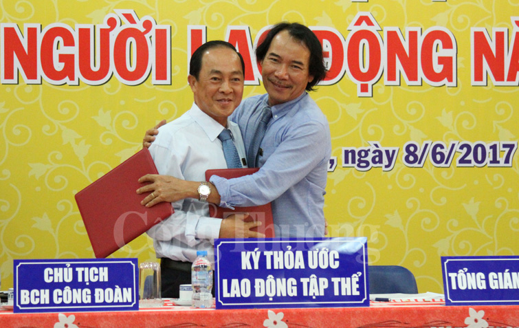 | Ông Lê Quốc Phong - Tổng giám đốc Công ty Bình Điền và Chủ tịch Công đoàn ký thỏa ước lao động tập thể |