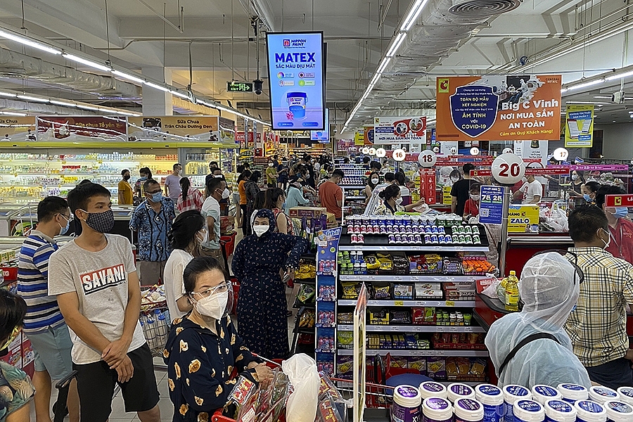 | Ngay trước thông tin Tp Vinh "ai ở đâu ở yên đó", người dân TP Vinh ùn ùn kéo đến các siêu thị trên địa bàn ngày càng đông để tích trữ hàng hoá |